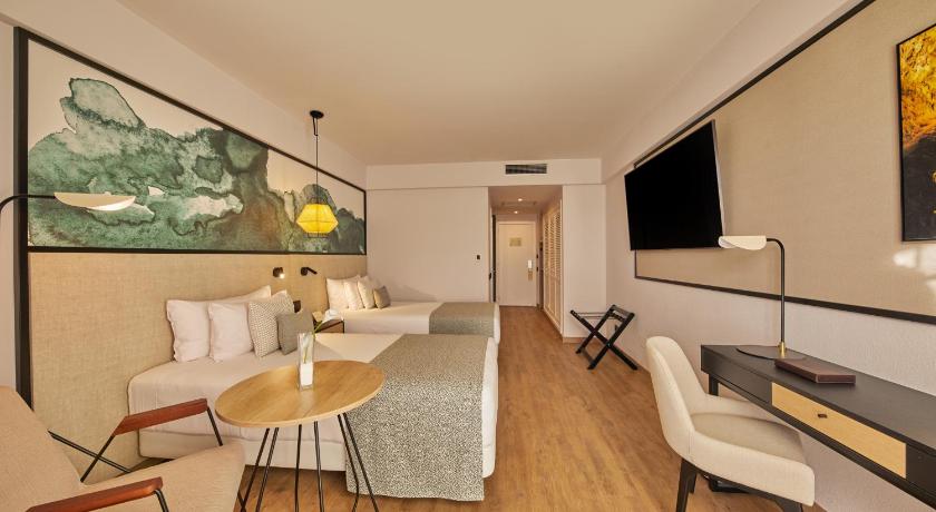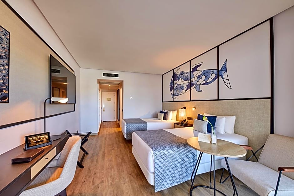 The spacious twin/double room features air conditioning, a mini-bar, a balcony with sea views as well as a private bathroom boasting a shower.
